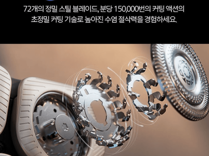 이는 피부 자극을 최소화하면서도 깔끔한 면도를 가능하게 합니다. 특히, 72개의 자가 연마식 칼날은 얼굴의 굴곡을 따라 정밀하게 면도해 주어, 매일 아침 완벽한 면도를 실현합니다.